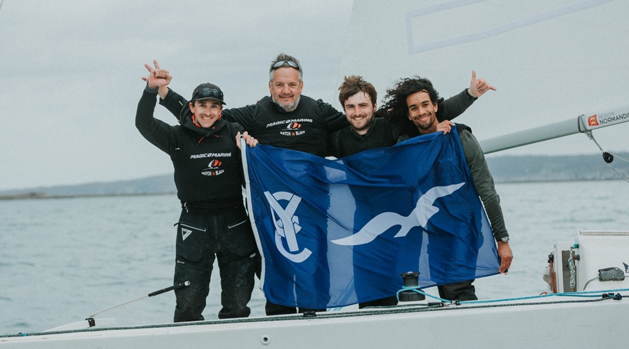 Au bout d’une finale particulièrement accrochée contre Marin Micoulot, Maxime Mesnil a remporté, chez lui à Cherbourg, son 3e titre de Champion de France de Match-Racing Open, après ses victoires en 2019 et 2022. Avec Yann Chateau, Swann Pain et Martin Allix à ses côtés, le normand s’est imposé avec brio à l’issue de quatre jours de compétition intense, dans des conditions souvent musclées, qui ont obligées les 12 équipages en lice à donner le meilleur d’eux-mêmes jusqu’au bout.